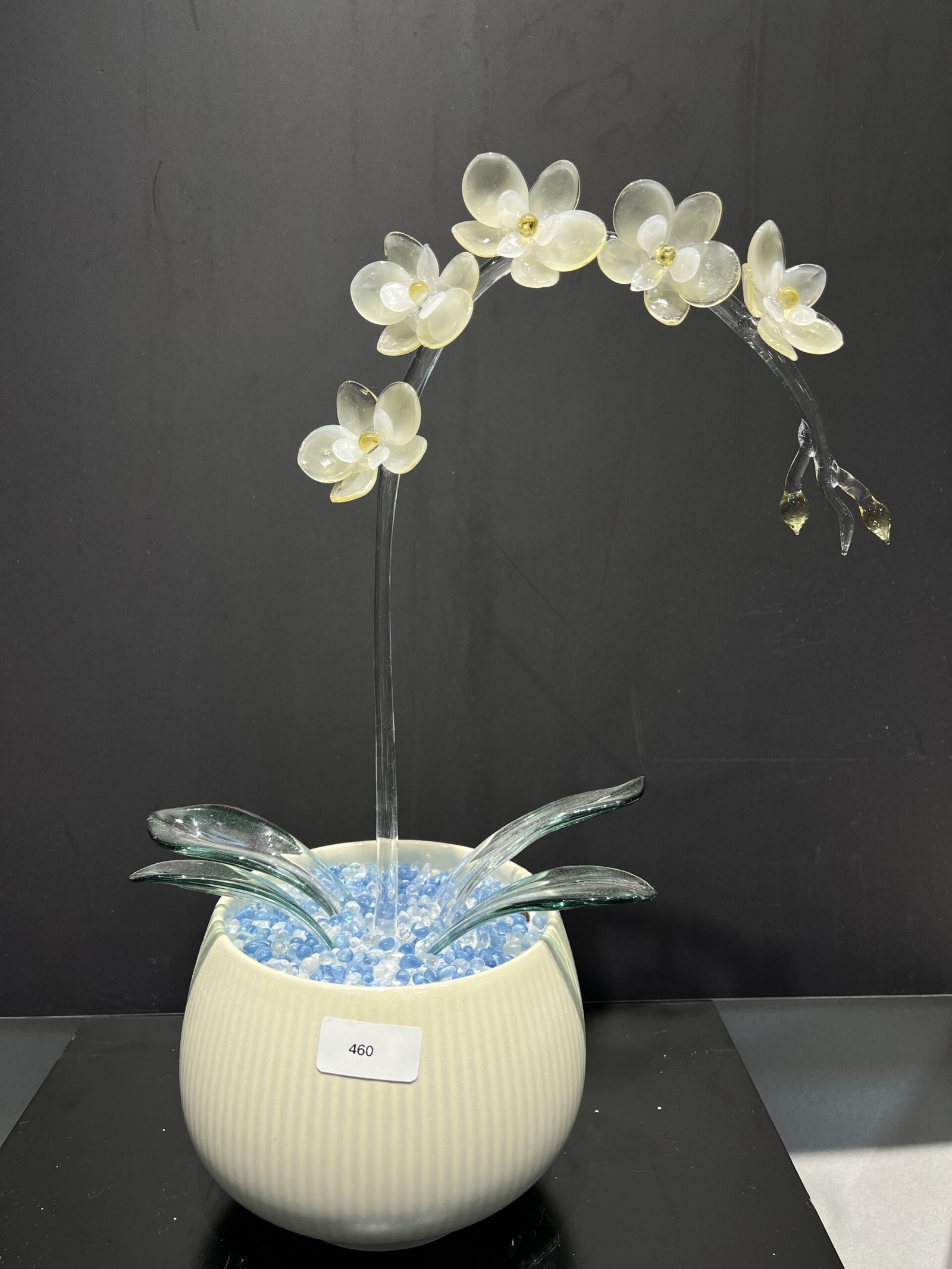 Bring a sense of regal elegance to your space. Our hand-sculpted glass iris captures the flower’s dramatic, standing form, highlighted by its dual-tone coloration.